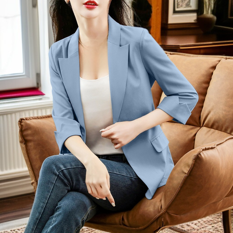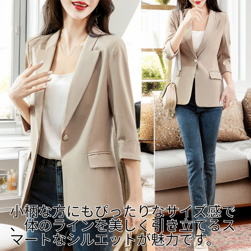 春の新作レディース七分袖カジュアルブレザー、スリムフィット、ショート丈のスタイリッシュなスーツジャケット。