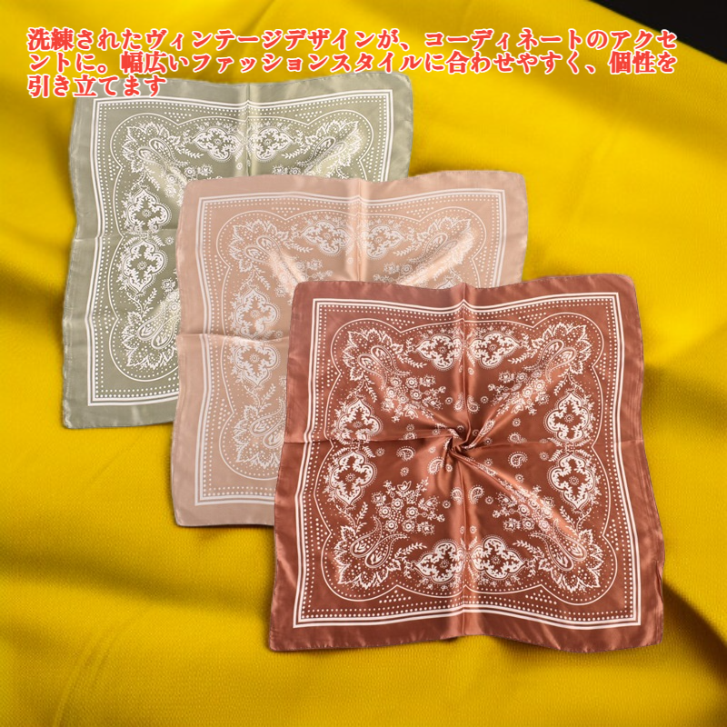 ● ヴィンテージサテン素材を使用しており、光沢感と上品な質感が魅力のヘッドスカーフです。普段使いにもパーティーにもぴったり。