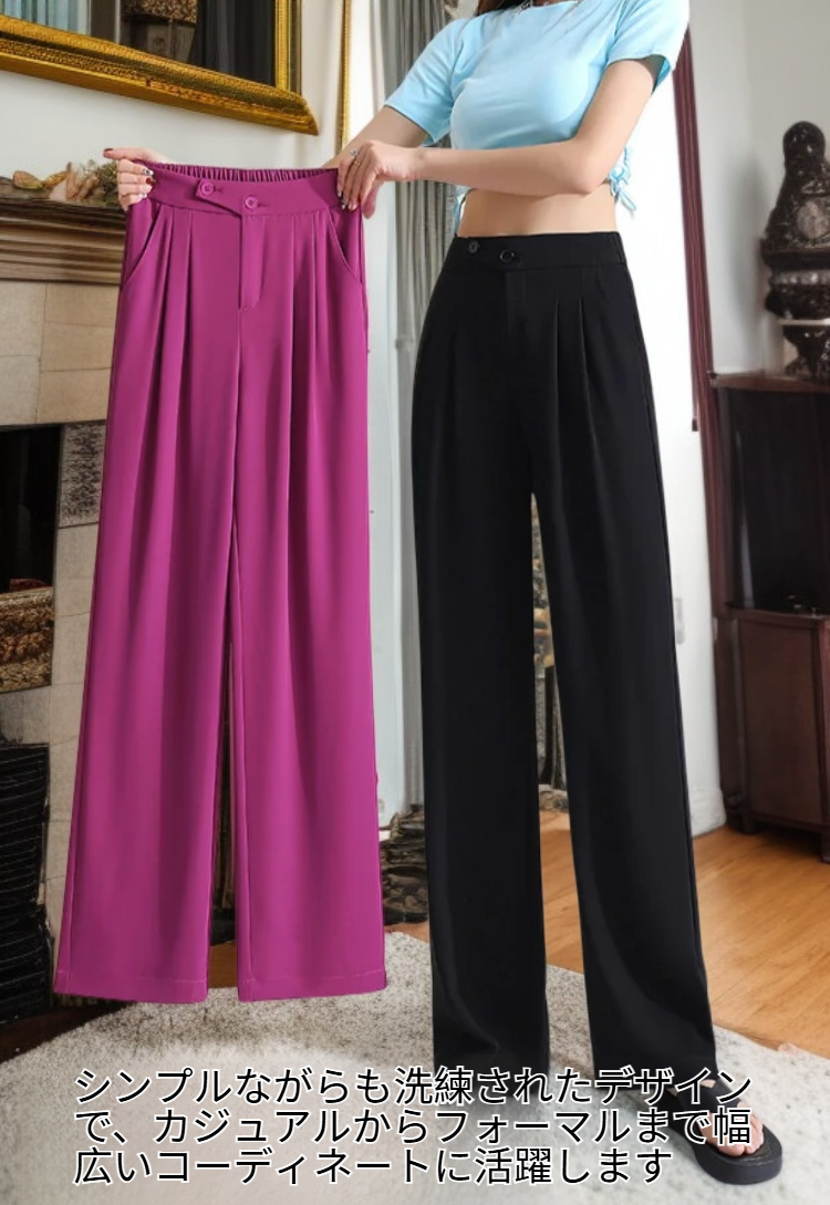 万能ハイウエストワイドレッグパンツ