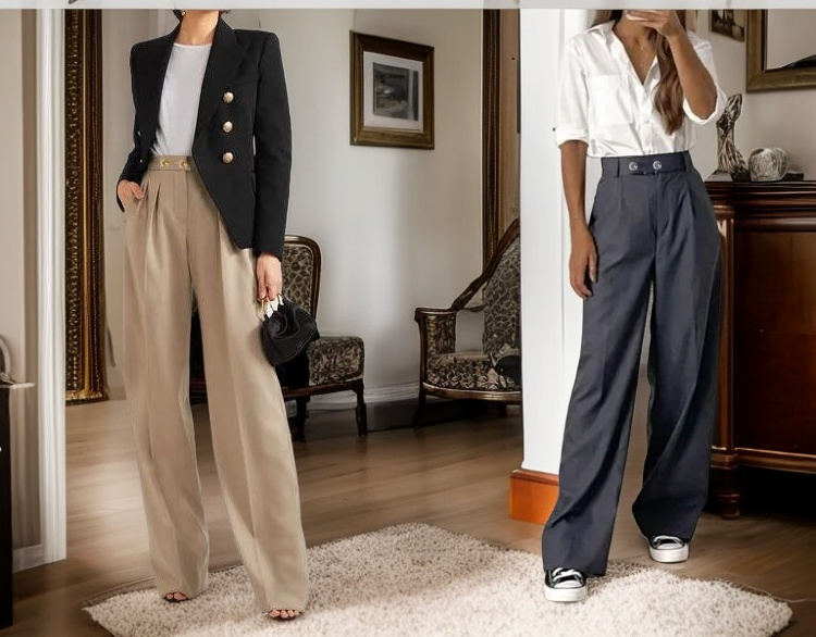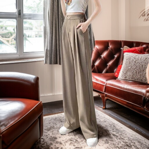 ファッショナブルなハイウエストワイドパンツ
